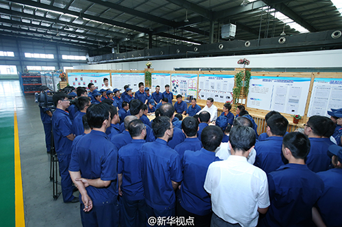在裝配分廠一班和二班的班組園地,總書記同企業(yè)干部職工圍坐一起進(jìn)行座談。習(xí)近平指出,中國夢具體到工業(yè)戰(zhàn)線就是加快推進(jìn)新型工業(yè)化。把制造業(yè)搞上去,創(chuàng)新驅(qū)動(dòng)發(fā)展是核心。我們要向全社會(huì)發(fā)出明確信息:搞好經(jīng)濟(jì)、搞好企業(yè)、搞好國有企業(yè),把實(shí)體經(jīng)濟(jì)抓上去。