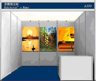 在標(biāo)準(zhǔn)展位正向上部提供寫有中英文參展商名稱和展位號的楣板,楣板高度一般為20cm;