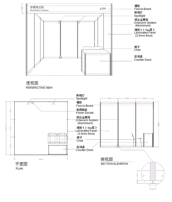 標(biāo)準(zhǔn)展位更詳細(xì)規(guī)格如下: